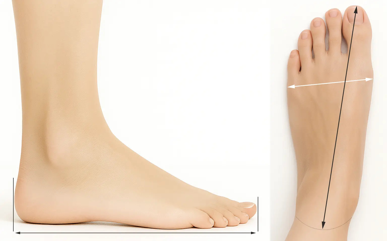 Measure the distance between these points — this is your foot length (see the black line in the diagram).